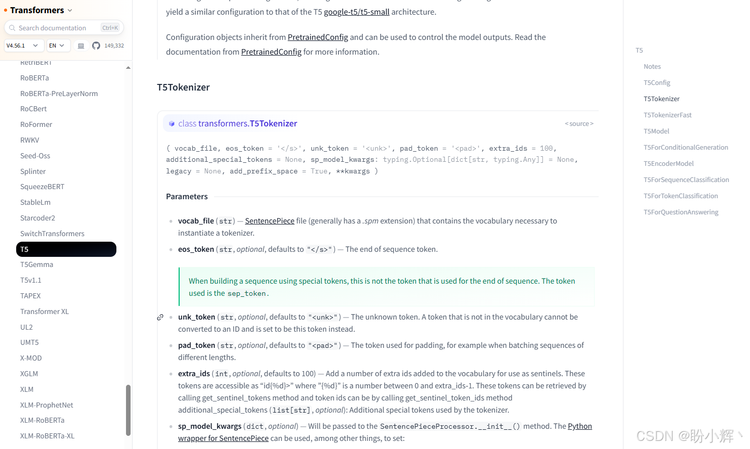 那么我们如何确定该导入哪些 transformers 对象 (T5Tokenizer 或 T5ForConditionalGeneration) 来加载 T5 模型呢?Hugging Face 在 T5 模型页面提供了使用示例(见下图所示),这是我们判断需要导入哪些组件的依据。