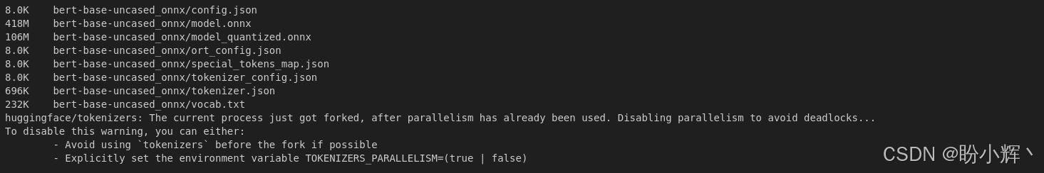 输出结果如下所示,可以看到当前 ONNX 模型大小约为 400MB: