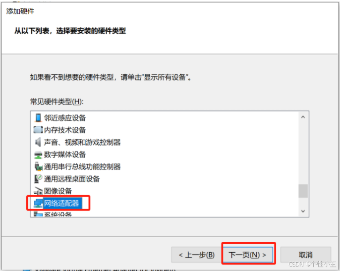 1.5 单击选中网络适配器-下一页