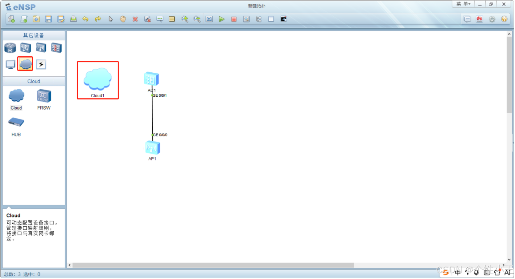 3.1 打开ensp-选择一款AC和AP将它们用网线连接起来