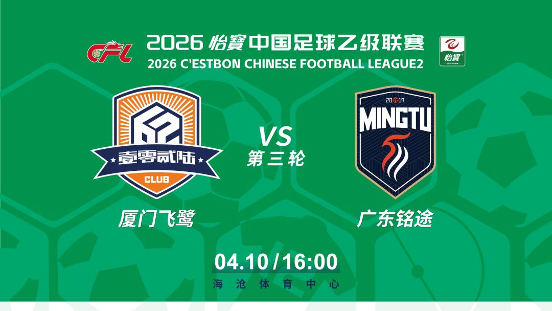 心向巅峰,不负热爱!2026年4月10日(星期五)16时,2026中国足球乙级联赛第三轮焦点战在厦门海沧体育中心火热开赛,厦门飞鹭坐镇主场,迎战广东铭途,上演了一场跌宕起伏的绿茵对决。