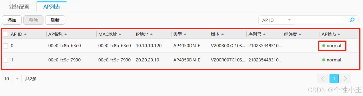 - 等待一会儿可以看到AP的状态显示nor并且获取到IP地址说明你已经成功上线了AP!!!