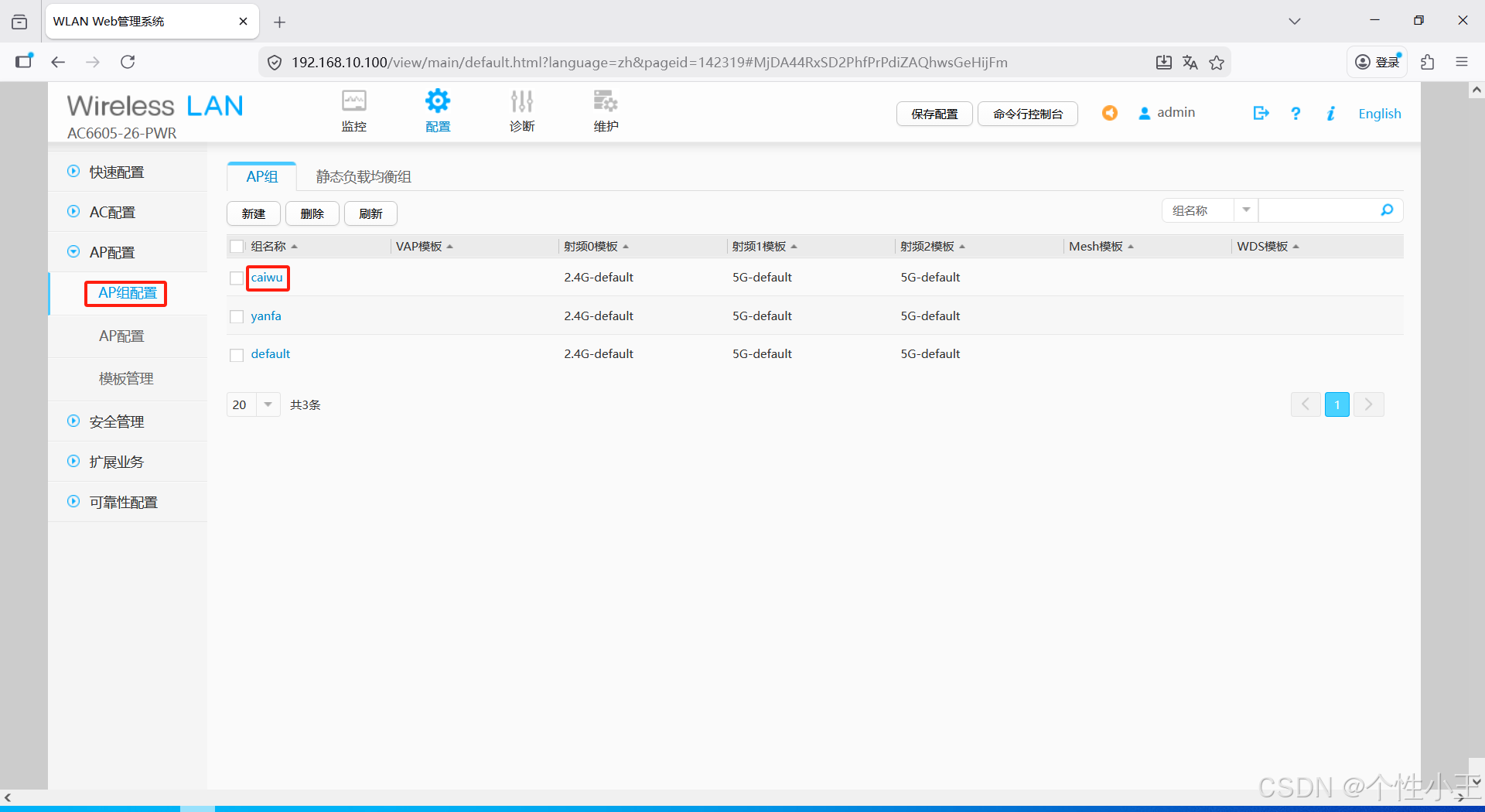 - 如果想更改可以点击AP组配置-选择你要更改的AP组