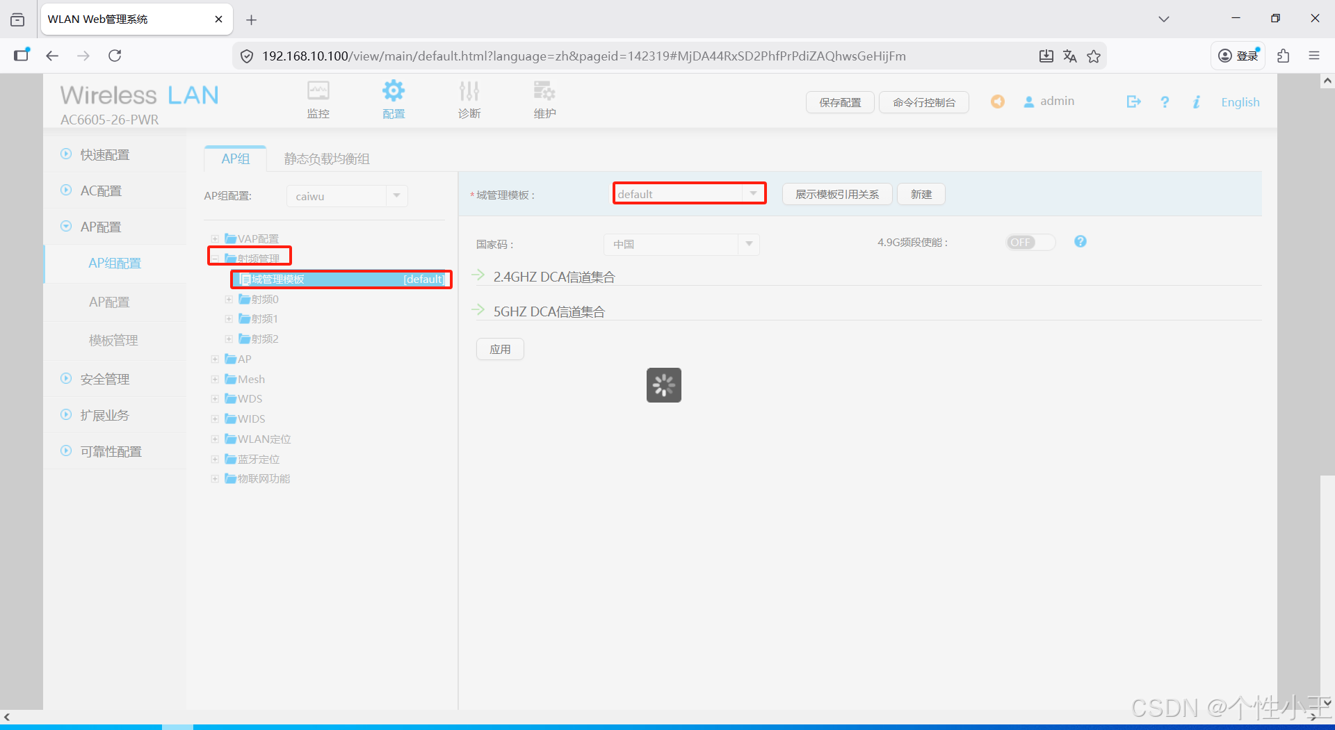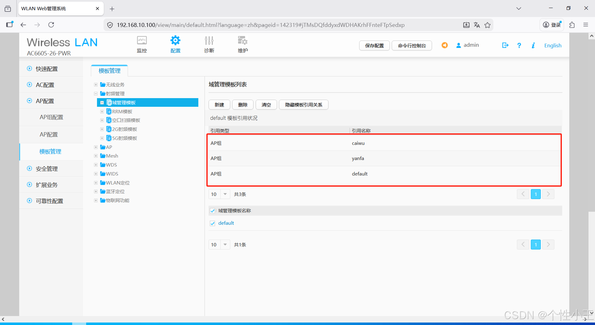 - AP配置-模版管理-射频管理-域管理模版-新建