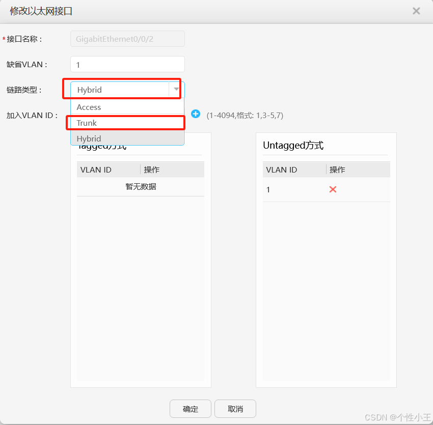 - 将链路类型更改为trunk