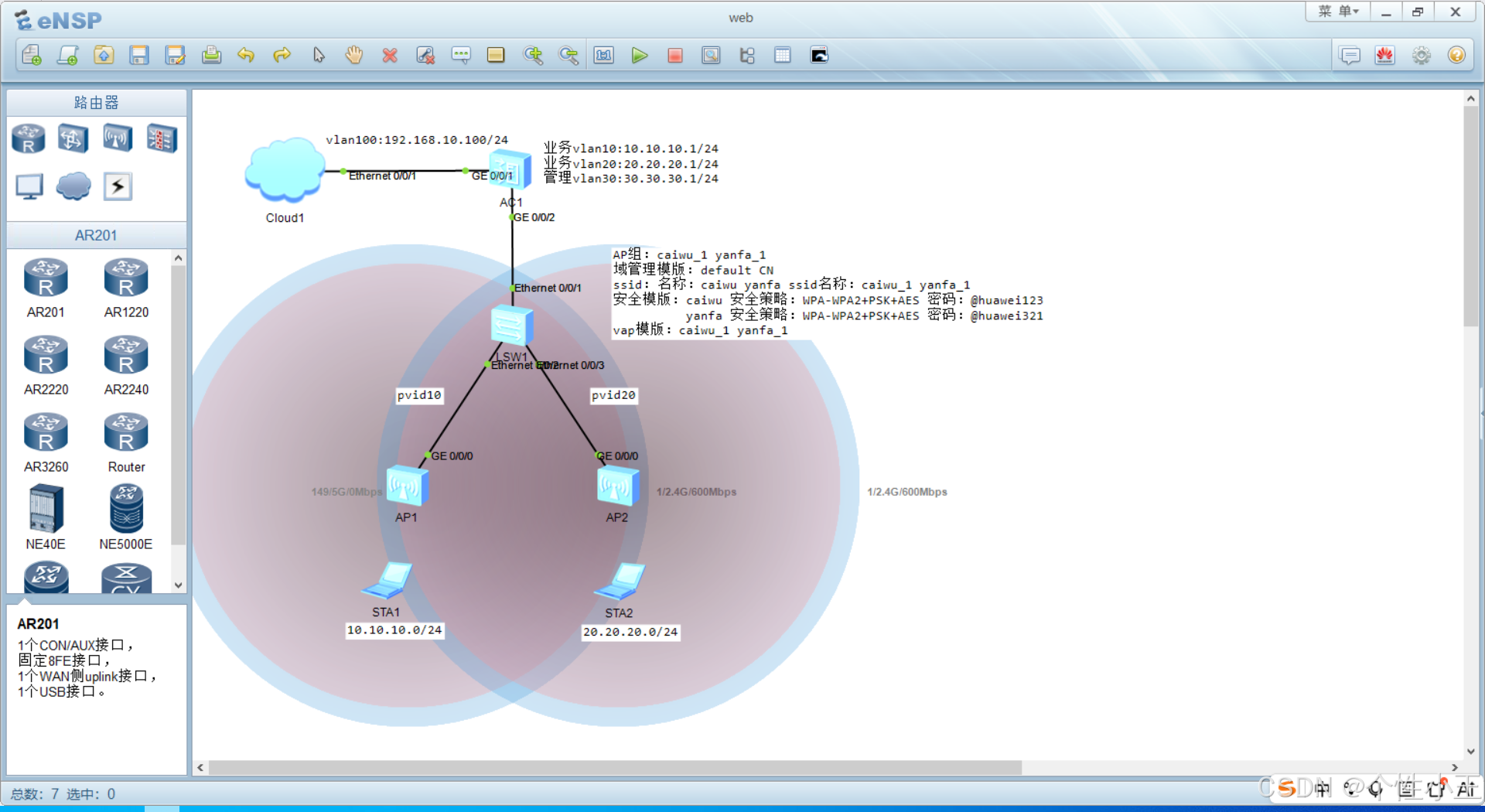 - 回到ensp就可以看到AP的信号覆盖范围