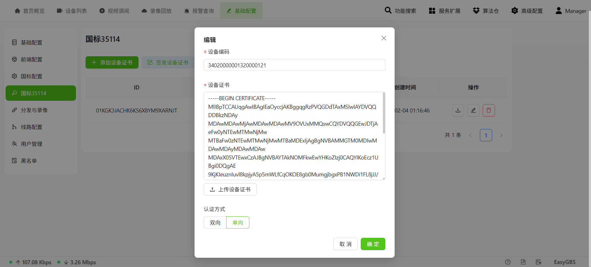 而国密GB35114则是我国视频监控领域的强制性安全标准,要求采用SM2、SM3、SM4等国密算法,实现设备身份认证、信令防篡改、视频流加密传输等全链路安全防护。EasyGBS平台深度融合两大标准,形成了"互联互通为体,国密安全为翼"的核心架构。