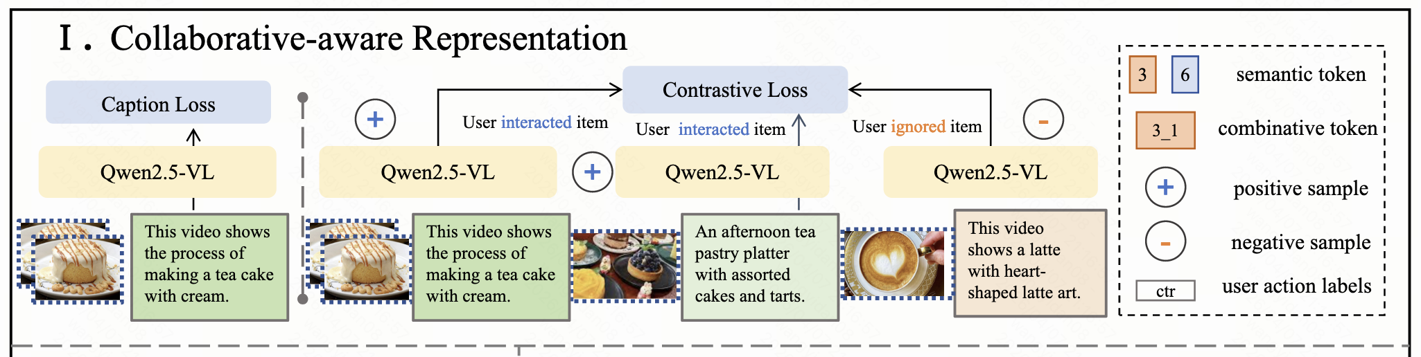 - 开发了一种基于协同过滤的方法,将用户交互行为信息集成到原始视觉语言嵌入模型中,从而使语义标记能够包含在多模态内容信息和个性化协同信息。