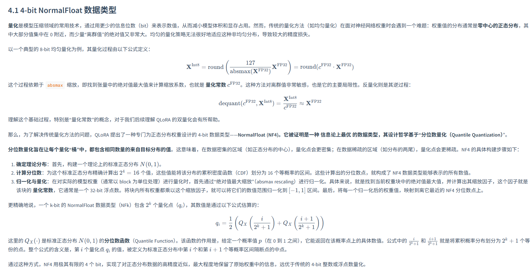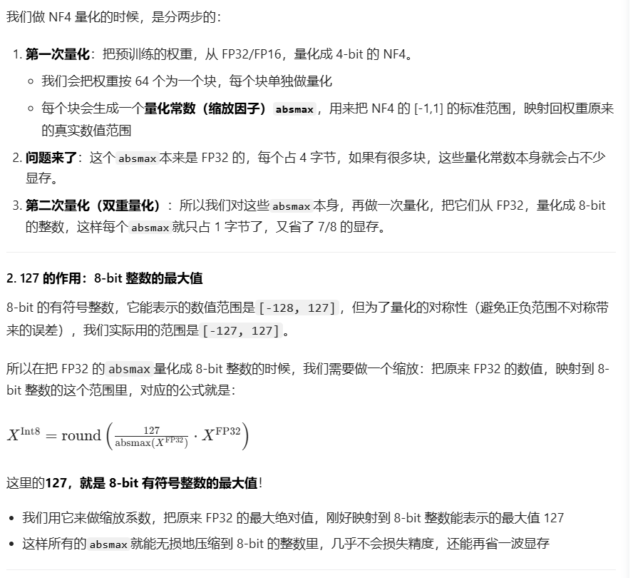 LoRA 和 AdaLoRA 分别从"低秩近似"和"自适应秩分配"两个角度优化了微调过程,但它们都还有一个共同的前提,原始的、被冻结的大模型权重仍然是以较高的精度(如 FP16 或 BF16)加载到显存中的。对于动辄几百上千亿参数的模型来说,这部分权重本身就是一笔巨大的显存开销。