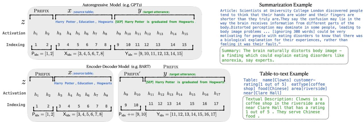 PREFIX部分对应的激活值 hihi(其中 i∈Pidx)是从一个专门的可训练矩阵 Pθ 中提取的,这部分参数就是微调的对象。 - 模型计算的激活值 : 而原始输入 x 和输出 y 对应的激活值,则是由冻结的 Transformer 模型正常计算得出的。