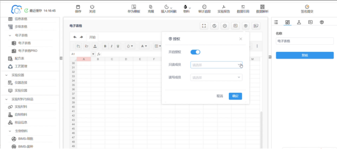 ****页面布局:****系统页面分为上方/左边/右边工具栏,中间显示实验内容。上方工具栏里有存为模板、克隆、审计追踪、实验报告等常用功能。但每个模块右上角都重复排列着3-6个按钮,有些不常用的功能也会展现,增加了找想用功能的时间。