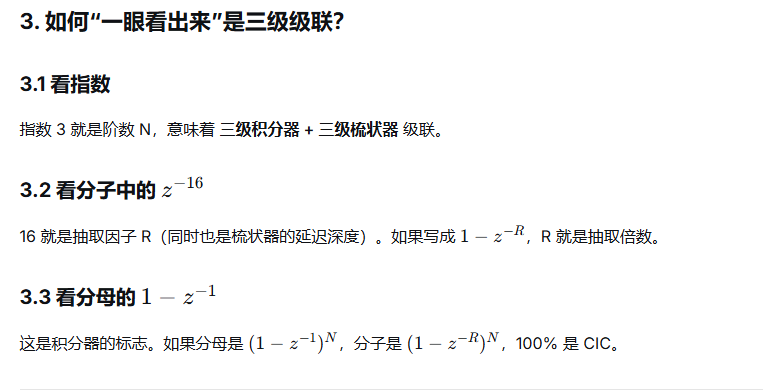 中 一眼看出 积分器和梳状器部分以及三级级联,需要对 CIC 滤波器的标准形式非常熟悉。下面我会分步拆解,让你不仅能看懂,而且以后看到类似形式能立刻反应过来。