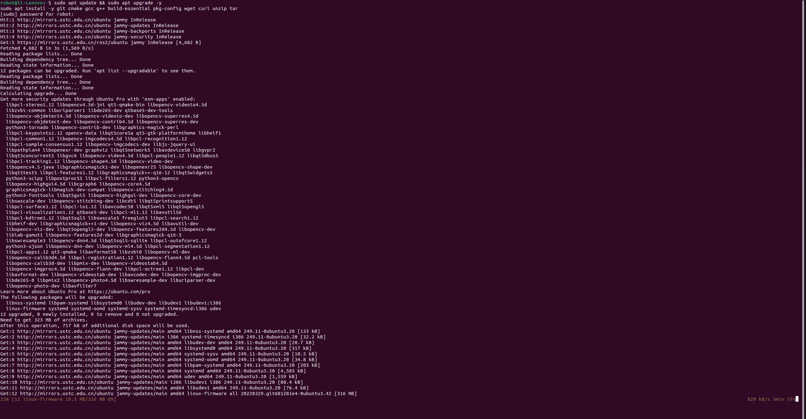 sudo apt install -y git cmake gcc g++ build-essential pkg-config wget curl unzip tar