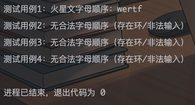一旦发现非法输入,直接返回空串. - 步骤 3:BFS 拓扑排序