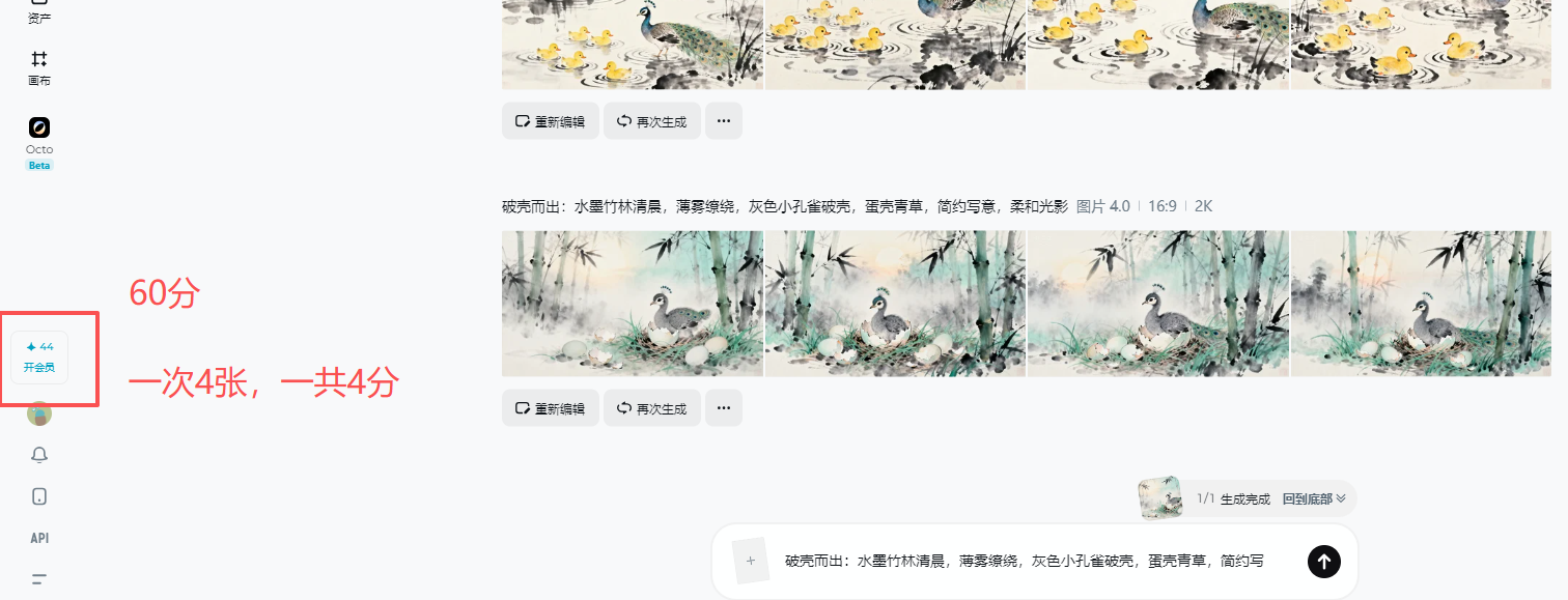 生成多张,选第一张,偏向平面风格,其他都是3D立体风格