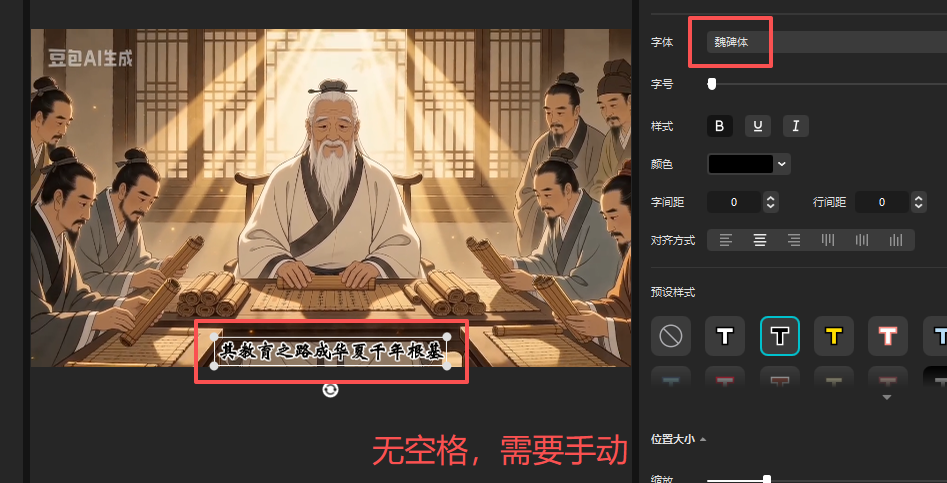 调整文字在下方,缩小,加黑色边框、古风免费文字