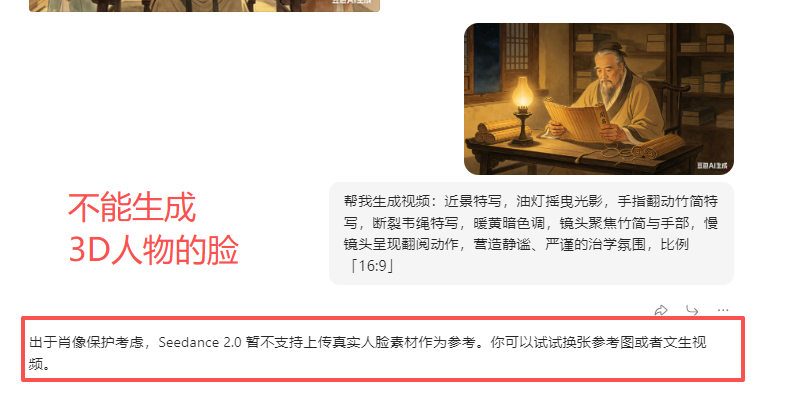 豆包视频不能做真人(哪怕这个人是虚拟的人物,也是参考了很多真人照片合成的)