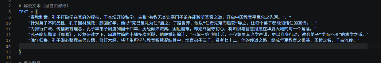 TEXT = "春秋乱世,孔子打破学在官府的桎梏,于杏坛开设私学,主张"有教无类",让寒门子弟亦能聆听圣贤之道,开启中国教育平民化之先河。"