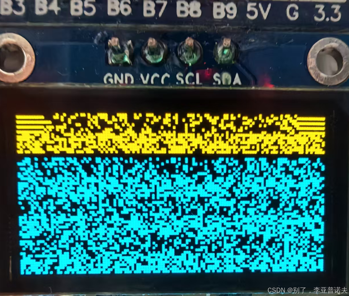 得到这样一个花的屏幕,是因为刚启动的SSD1306中的数据是随机的,这样数据为1亮,数据为0灭,就是这样的效果。