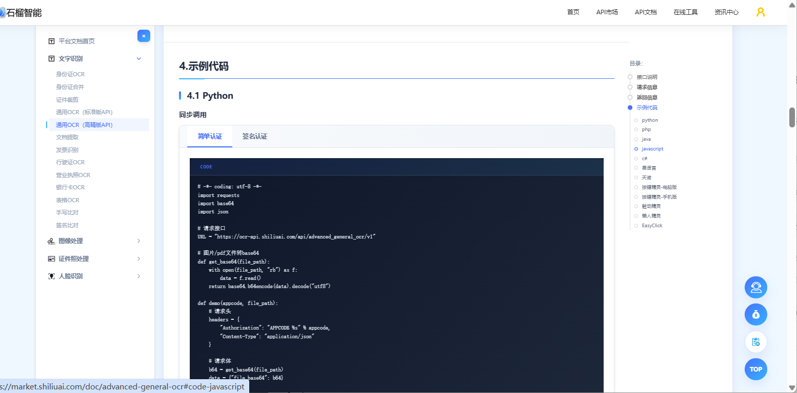 API文档地址:https://market.shiliuai.com/doc/advanced-general-ocr