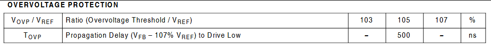 当输出短路,芯片进入关断模式,消耗仅 300 μA 。VCCVCC 电容从 10.5 V 放电至 9.0 V 的时间大大延长,因此打嗝周期的平均输入功率极低,有效保护了电路且不产生高热。