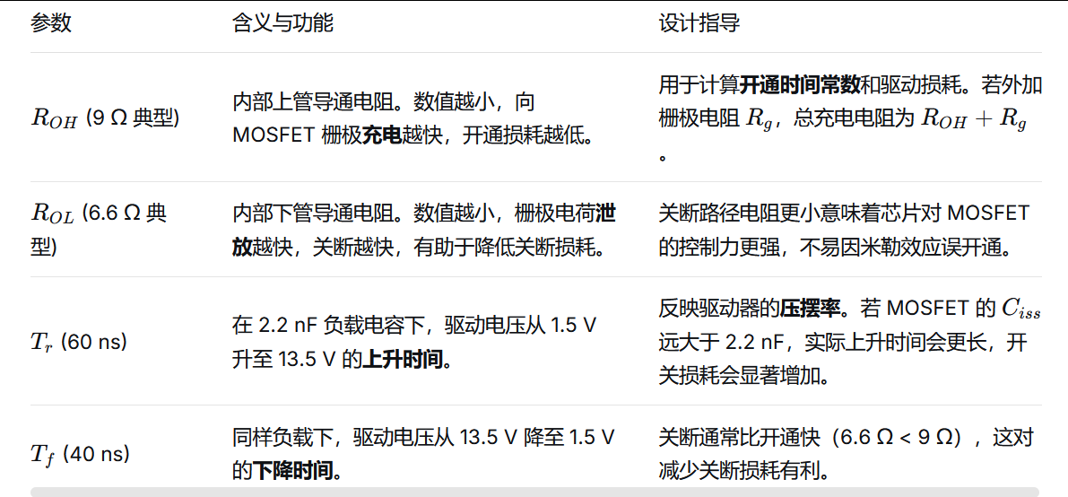 ###### 若驱动线电感较大或MOSFET栅极电容 CissCiss 过大,瞬间电流可能突破此限,导致驱动级过应力老化。