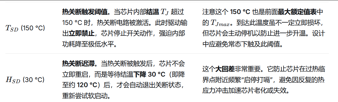 | ICC2 | 正常工作且有开关(无负载,空载打嗝状态) | 4.7 mA | 6.0 mA | 比静态多出约 1 mA,这部分是驱动级产生的动态电流(对内部栅极电容充放电)。实际带载时,由于开关频率不变,ICC 基本维持在该水平。 |