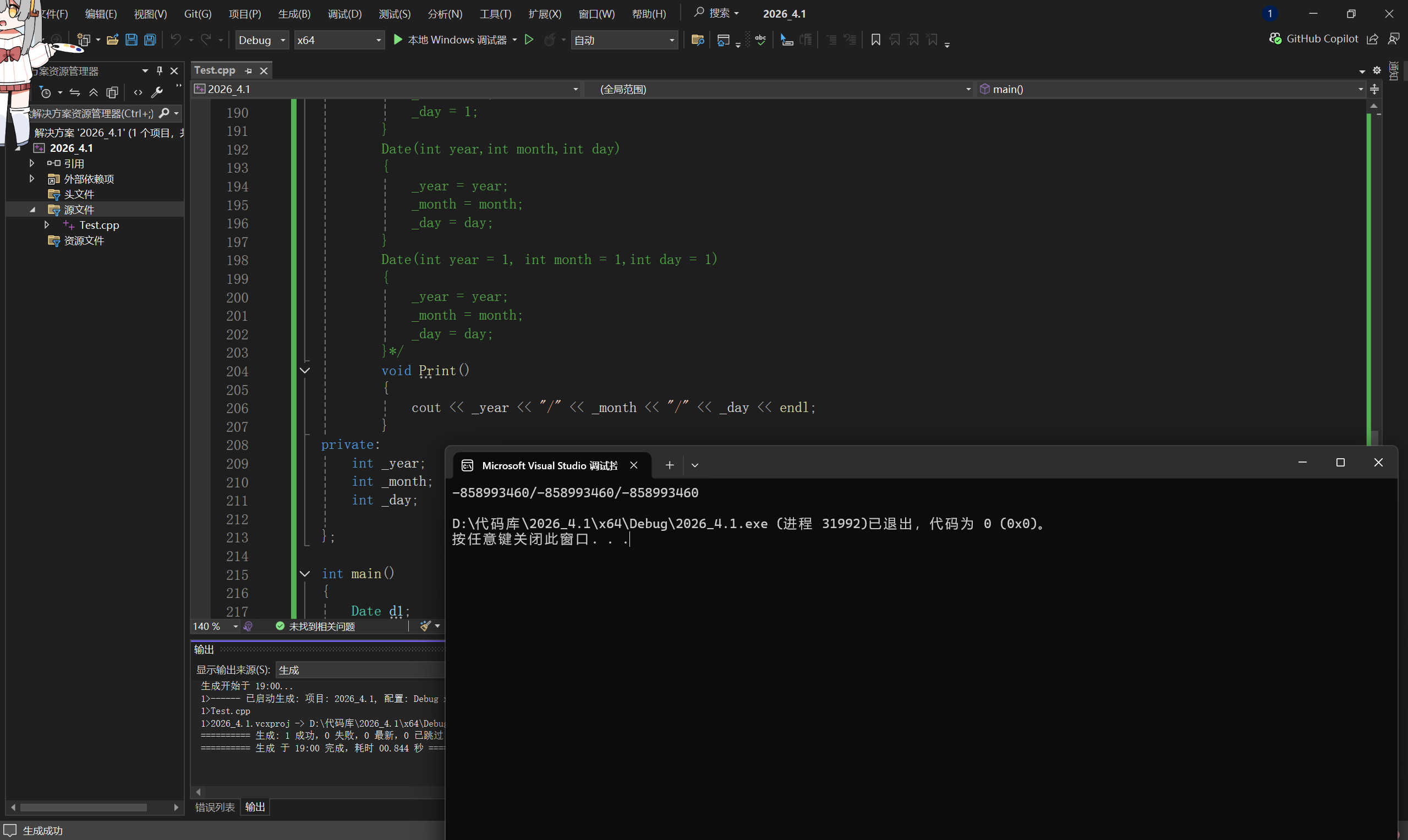 // 编译报错:error C2512:"Date":没有合适的默认构造函数可用