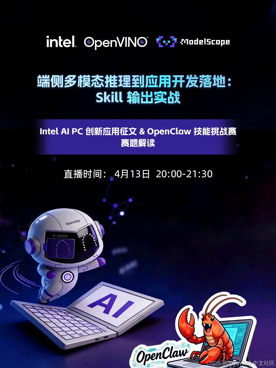 赛题拆解:现场解读Intel AI PC创新应用征文 & OpenClaw 技能挑战赛赛制与规则,助你精准把握创新点与技术落地关键。