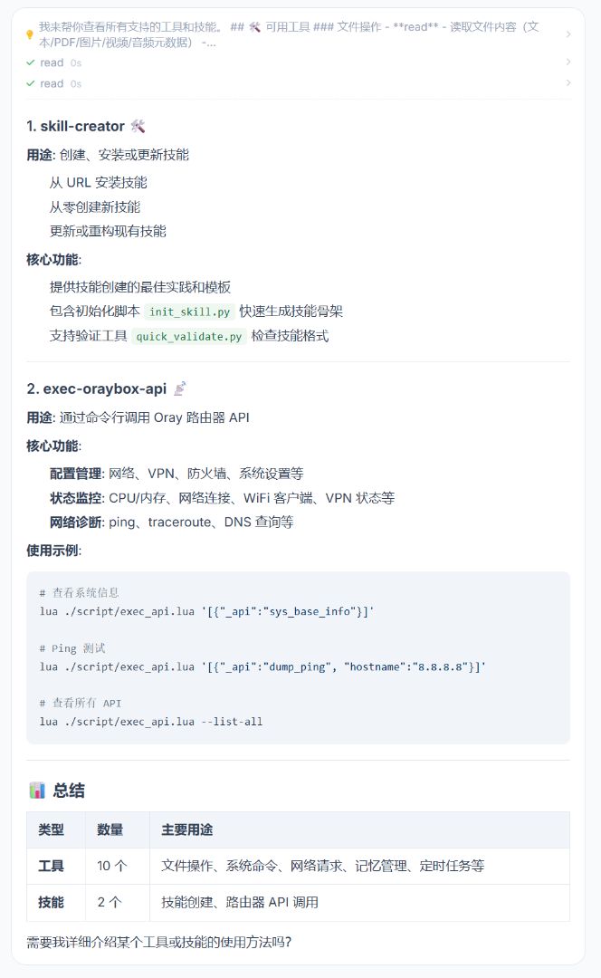 它不仅仅是个会聊天的AI,在支持随心搭配大模型和各项Skills的同时,它更是能查路由器状态、改设置,曾经复杂的网络配置,现在只需"一句话"就能搞定!
