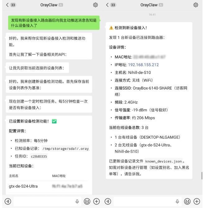 而在OrayClaw与路由器打通之后,很多风险可以更早被发现,也能更快被处理。