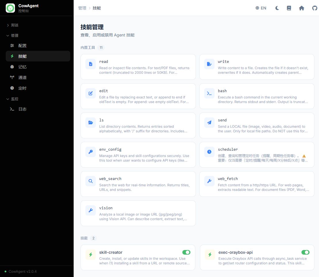 此外,X1 Pro内置的OrayClaw和其他"龙虾"一样,既支持内置工具、Skills、定时任务,也支持按需接入不同AI模型,可以根据实际需求自由组合能力。