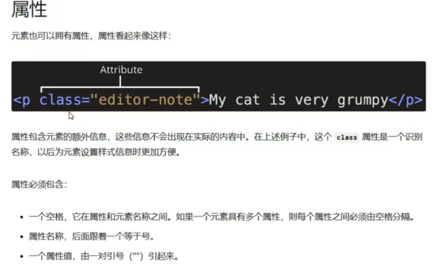 属性是作用在标签上的,不同于内容,属性不会直接展示在内容上
