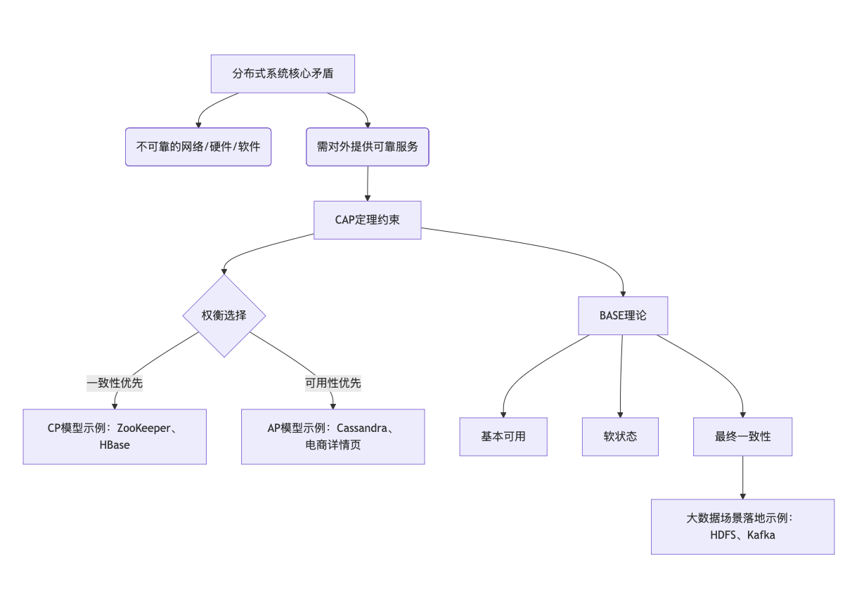 CAP与BASE的逻辑承接关系:CAP指出分布式系统存在根本约束,而BASE则在这一约束下提供了务实的解决路径------既然无法做到强一致性,就接受"软状态",追求"最终一致"。这一思想深刻影响了后续所有分布式系统的工程实践。