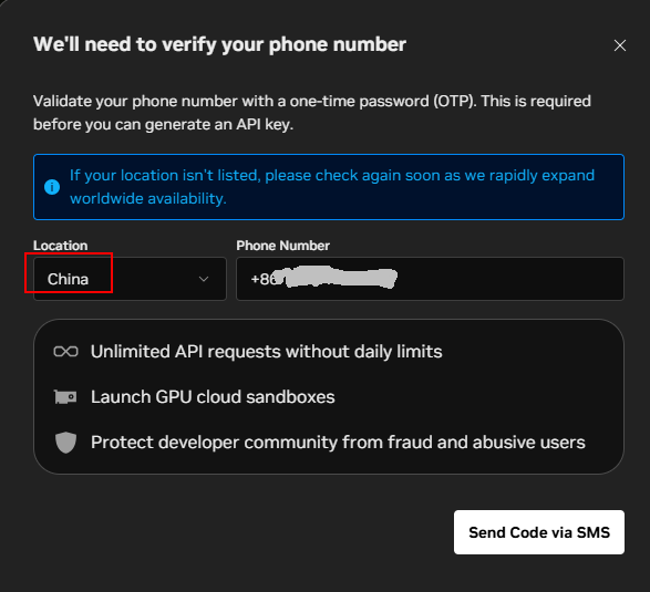 然后这里输入手机号,注意一定是+86开头后面加自己手机号。