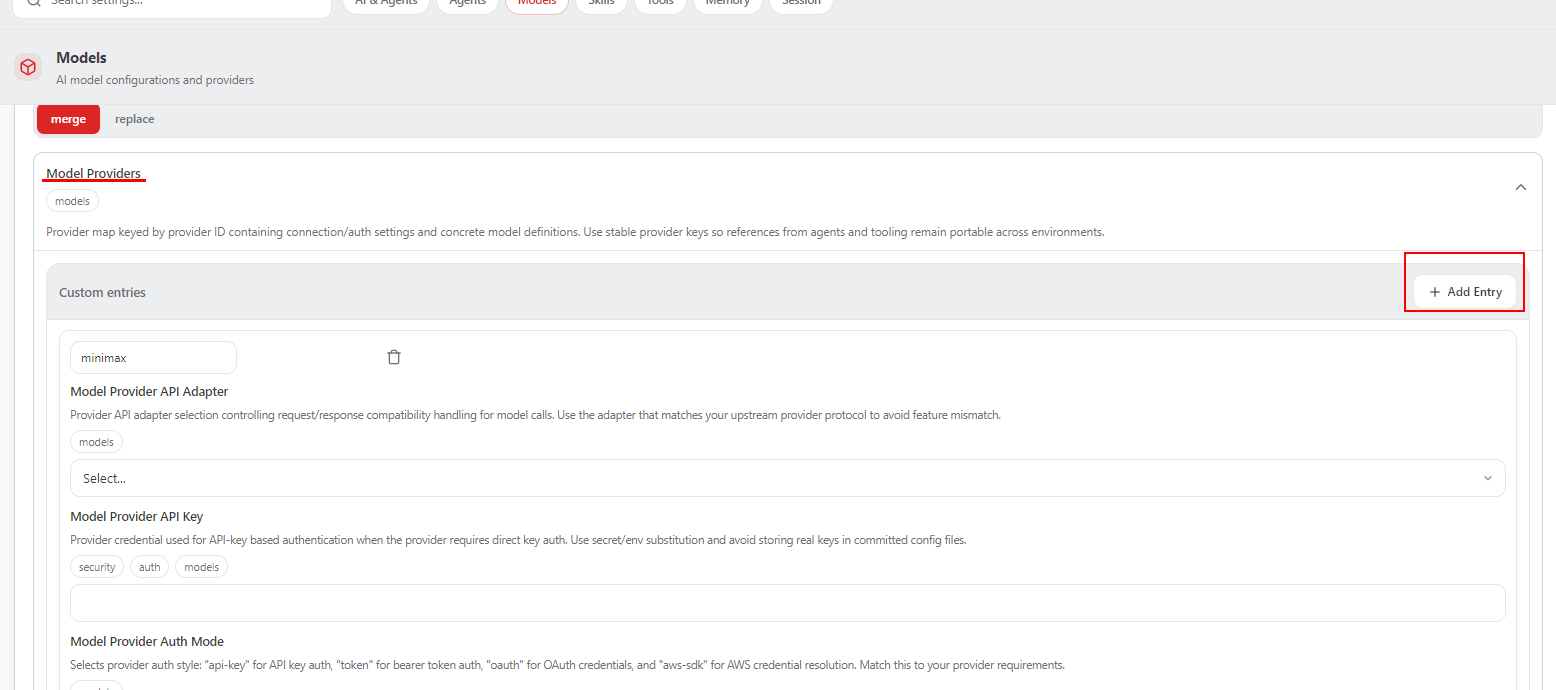 找到Model Providers,点击add entry