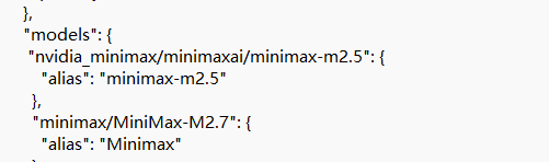 把它的内容改成nviaia_minimax/minimaxai/minimax-m2.5
