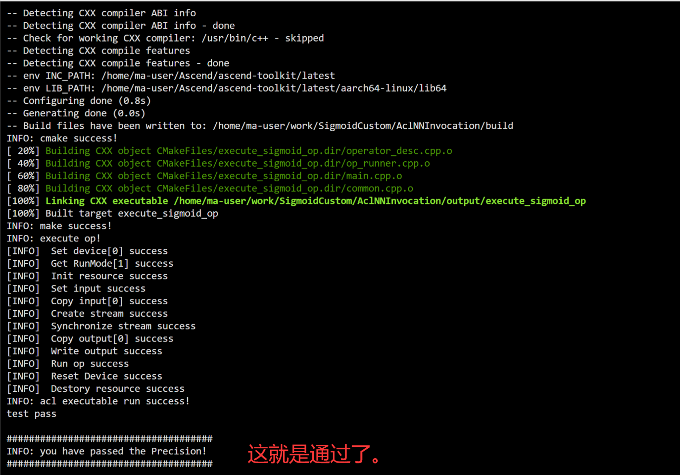 在SigmoidCustom/AclNNInvocation文件夹下校验,校验命令。