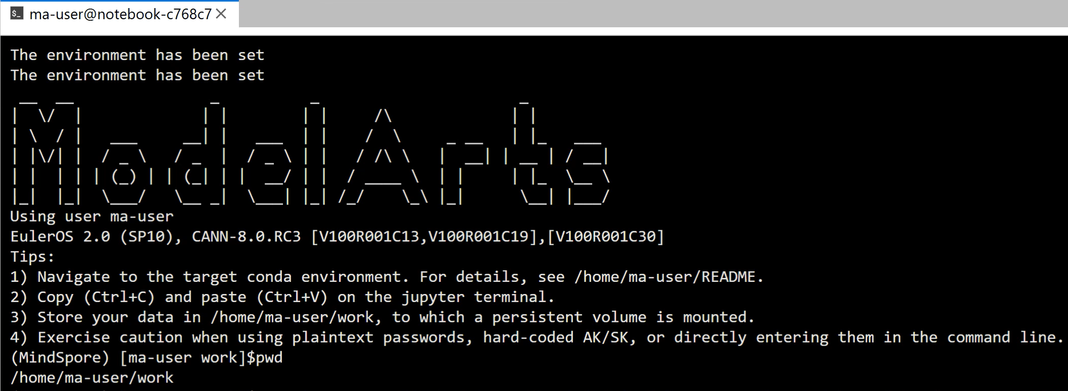 这里给的是环境的一个说明,我这里使用的是华为云-ModelArts-Notebook的部署方式处理的。