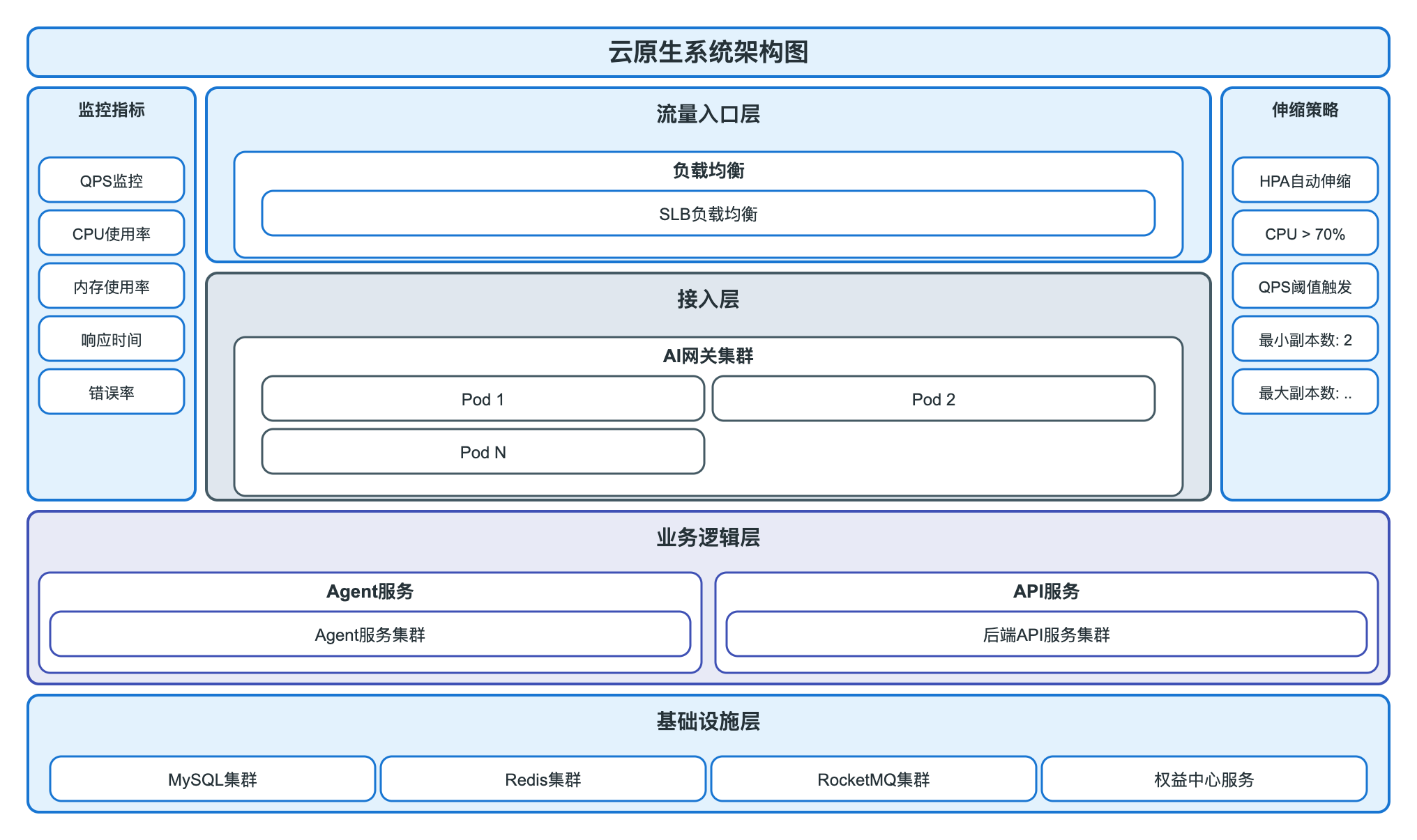 故障隔离:单点故障不影响整体可用性,降级有预案