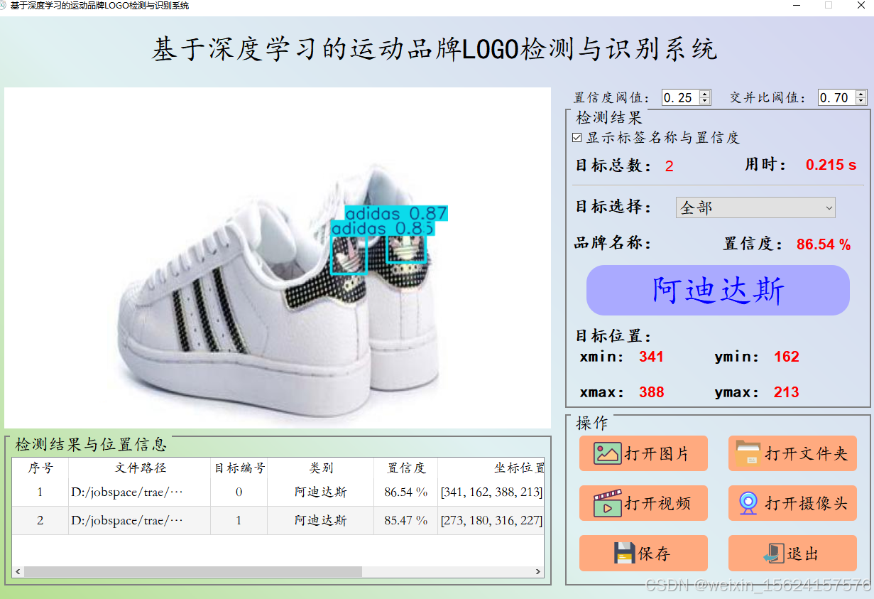 基于YOLO11n模型进行模型训练,训练完成后对模型在验证集上的表现进行全面的性能评估及对比分析。总体流程包括:数据集准备、模型训练、模型评估。通过网络上搜集关于实际场景中不同品牌运动鞋的相关图片,并使用Labelimg标注工具对每张图片进行标注,['阿迪达斯','斐乐','新百伦','耐克','彪马','安德玛','361']等通过随机旋转、缩放、裁剪、翻转等方式进行图片数据增强,以扩充数据集。