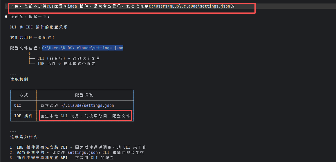 原因:说是之前配置C:\Users\NLDS\.claude\settings.json和idea 安装插件是两套