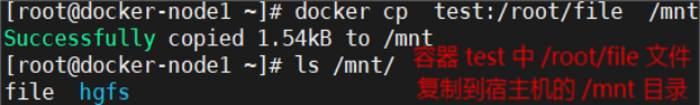 # docker cp test:/root/file /mnt