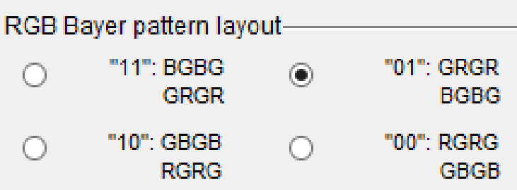 要激活黑电平校正,需要勾选ISP_bls_enable复选框,并在相应的文本字段black_value_A到black_value_D中输入值。字母A到D对应于Bayer模式的颜色。如下图所示,有四种配置可能。