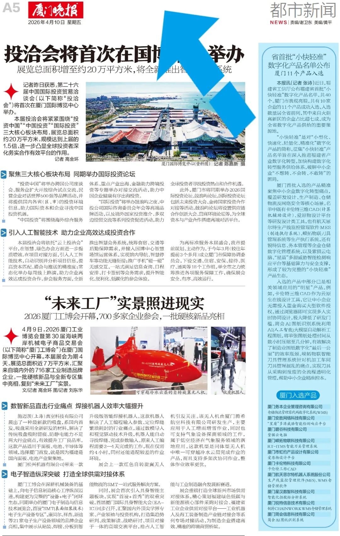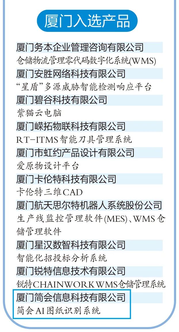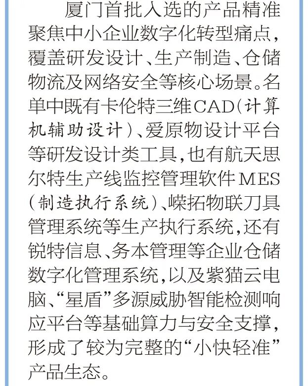 4月10日,**《厦门晚报》以《省首批"小快轻准"数字化产品名单公布》为题,报道了厦门简会等11家本土企业在数字化建设领域所取得的亮眼成效。**以下为报道原文:
