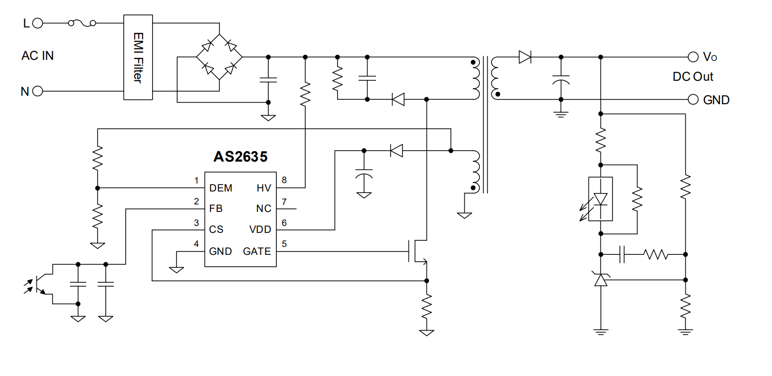 AS2635 是一款具有650V 高压启动的PFC 反激控制器,工作于临界导通模式或谷底导通模式。