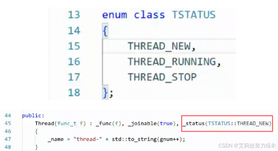 枚举设置了三种线程状态: