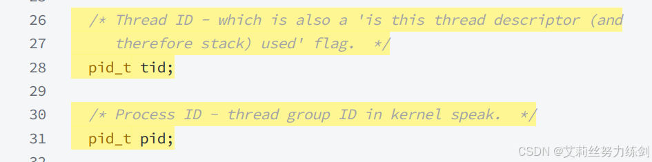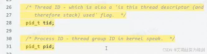 我们一般把描述线程的结构体的起始地址叫做线程ID。