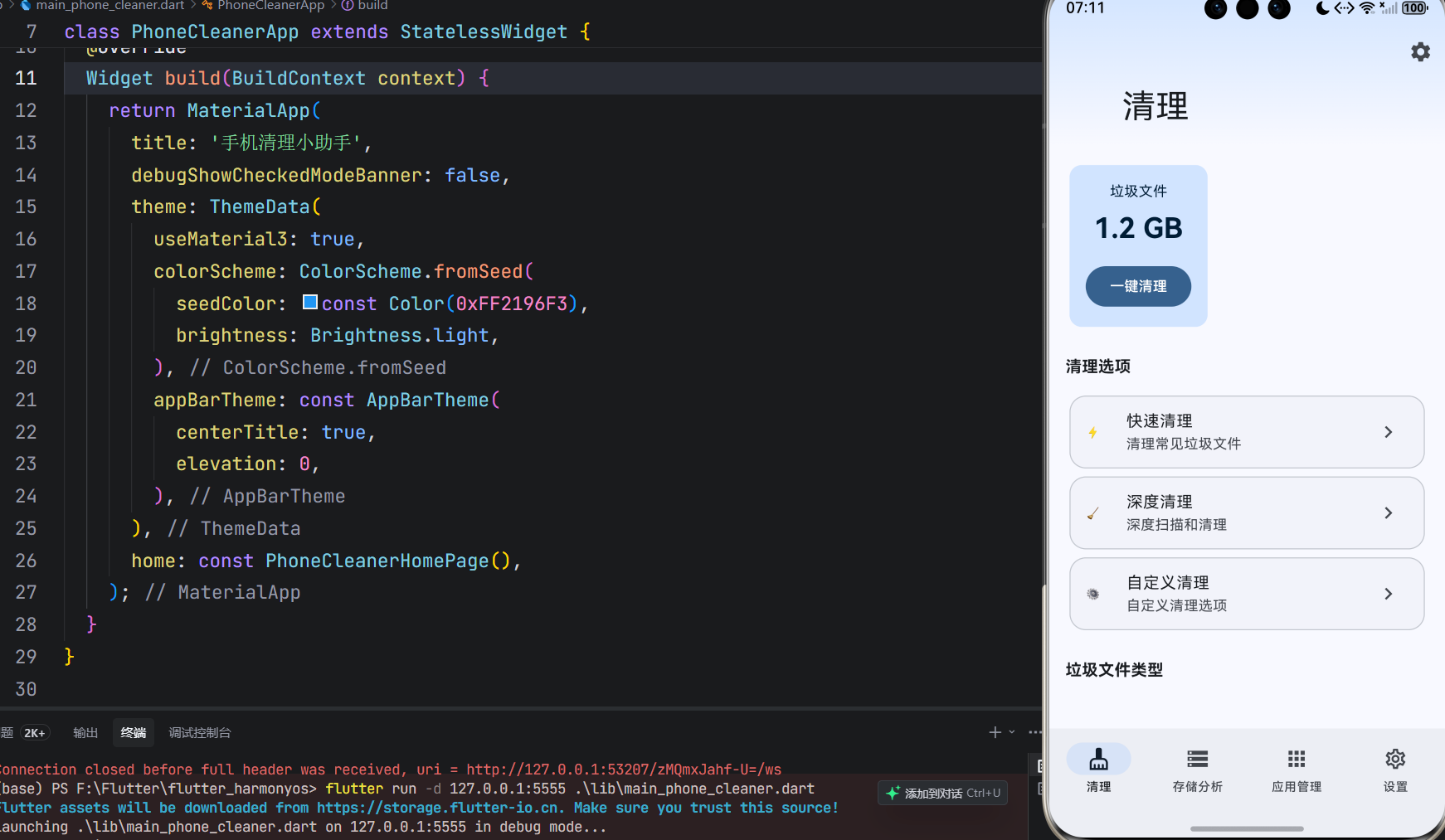 flutter run -d 127.0.0.1:5555 lib/main_phone_cleaner.dart