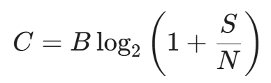 根据香农-哈特利定理,任何信道的容量 C 都受限于带宽 B和信噪比 S/N: